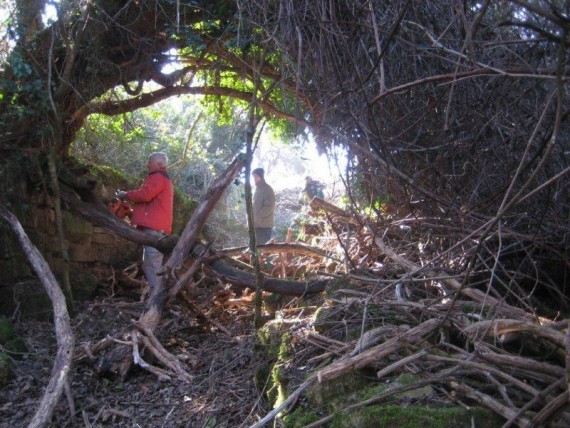 ki dokonča delo z vegetacijo, odstrani navaljeno kamenje ali podrte dele zidov.