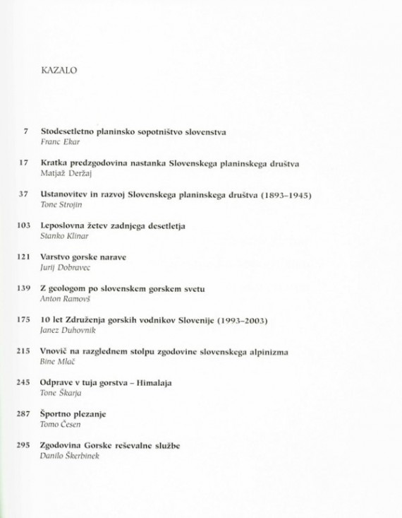 Avtorji posamičnih prispevkov so Franc Ekar (Stodesetletno planinsko