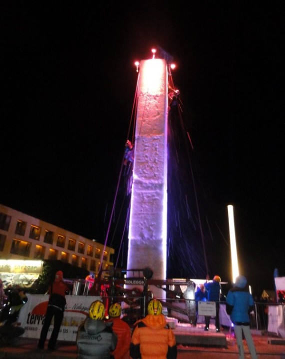 In še o dobri ideji za popularizacijo športa: »Petkovo slovesno odprtje tekme svetovnega pokala v tekmovalnem lednem plezanju UIAA je potekala na glavnem trgu v Meranu. Tam so zgradili 12 m visok ledni stolp, sestavljen iz blokov ledu, po katerem so organizatorji priredili večerno paralelno tekmo najboljših osmih v svetovnem pokalu. Dirka je bila res atraktivna in je pritegnila veliko pozornosti. Morda je to dobra ideja za popularizacijo športa, ker lednih blokov ni tako težko zamrzniti in sestaviti v stolp.«