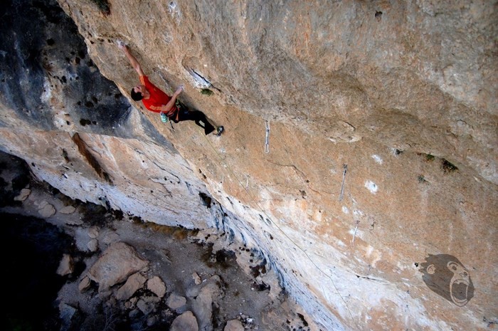 Ban (8a+), nato pa je v velikem slogu na pogled preplezal še smer Totem