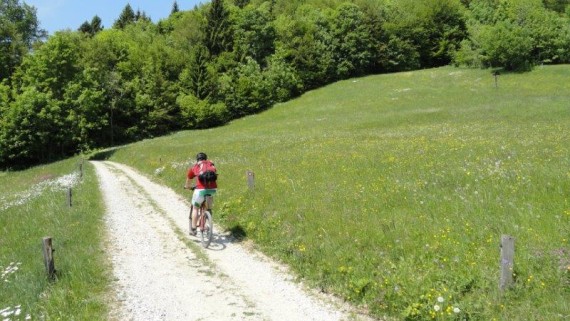 Od izhodišča se bomo v blagem vzponu odpeljali po asfaltni cesti v smeri Čemšeniške planine. Po 15 minutah kolesarjenja bomo zapustili asfaltno podlago in zapeljali na makadamsko cesto, po kateri bomo prečili vznožje Čemšeniške planine ter se v blagih okljukih vzpeli na Prvine (850 m). Od tod je vzpon bolj strm, mestoma težavnost doseže oceno V5, vendar pa se strmina kmalu unese in dosežemo vršno pobočje. Po razglednem pobočju se rahlo navzgor pripeljemo do Planinskega doma Franca Goloba na Čemšeniški planini, ki slovi po dobri hrani in tukaj bomo imeli počitek. Od izhodišča do planinskega doma potrebujemo ca.1,5 ure, hkrati pa je to tudi najtežji del ture. Od doma nas bo pot vodila rahlo navzgor proti Črnemu vrhu (1.205 m - najvišji del Čemšeniške planine), nato pa sledi daljši spust na Presedlje. Presedlje je gorski prehod skozi katerega je potekala stara Rimska trgovska pot Emona - Petovia). Kratek del poti bomo vozili po sledeh Rimljanov, nato pa se bomo obrnili v smeri Krvavice, vznožje katere bomo v blagem vzponu dosegli v 30 minutah. Krvavica je mitološka gora, kjer naj bi po pripovedih usmrtili Veroniko Deseniško. Eden od zapisov pravi takole: