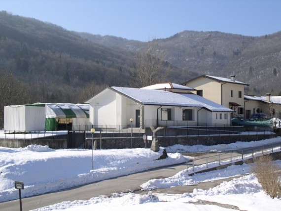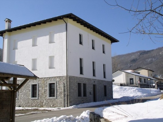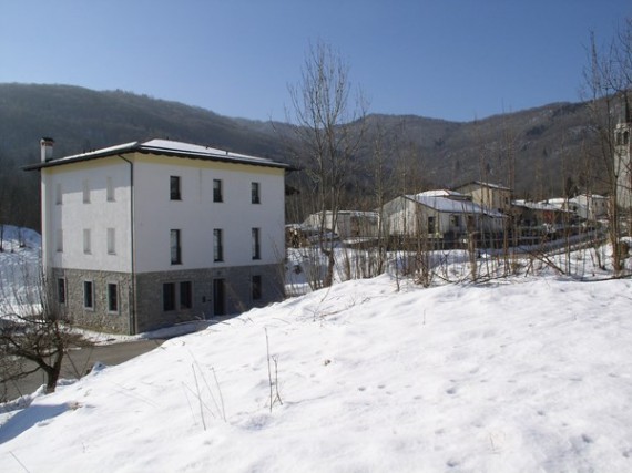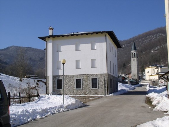 ... v pritličju mlekarna, v zgornjih dveh nadstropjih pa šola. Mlekarno in šolo so zaprli. Občina Tipana je stavbo lepo obnovila. V pritličju so skupni prostori, jedilnica, kuhinja in WC. V prvem in drugem nadstropju so sobe: nekaj je večjih, precej je dvoposteljnih sob z WC-jem in tušem. Skupaj je prostora za 40 oseb. Hiša ima tudi dvigalo.