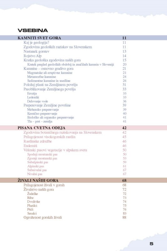 Učbenik Narava v gorskem svetu je namenjen varuhom gorske narave, za druge programe ter gorske stražarje, ob tem pa je napisan poljudno, tako da lahko po njem segajo tudi drugi ljubitelji in obiskovalci gorske narave. Tem bo rabila za izpopolnjevanje izobraževanja o gorski naravi, ki ji je uspelo ohraniti svojo divjo lepoto in občudovanje človeka. Na 150 straneh je vsebina razdeljena na: - kamniti svet gora, - pisana cvetna odeja, - živali naših gora, - varstvo gorske narave in - problemi gorskega turizma. Planinska zveza Slovenije in njena Komisija za varstvo gorske narave sta z izdajo te prenovljene edicije naredili pomemben korak za ohranitev gorske narave. To pa je tudi ena izmed pomembnih usmeritev, zapisanih v uvodu Statuta Planinske zveza Slovenije.