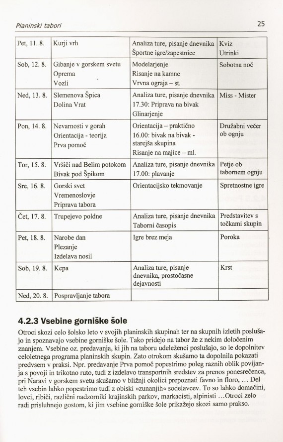 del programa planinskih skupin oz. mladinskih odsekov v planinskih društvih.
