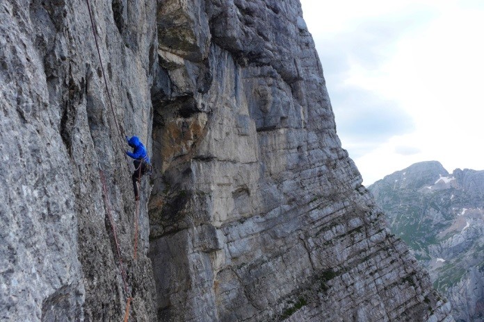 smer preplezava v enem dnevu. Že po dveh raztežajih sva ob pogledu navzgor