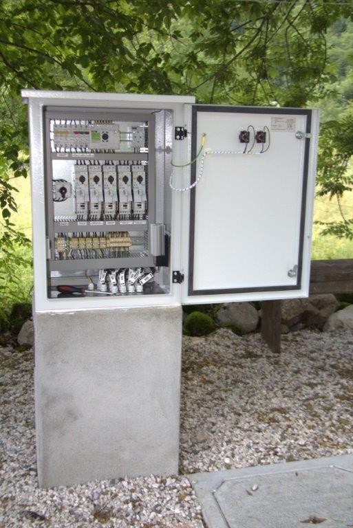 Čistilno napravo so odprli z desne: predsednik PZS Bojan Rotovnik, Jože Duhovnik, direktor podjetja Dr. Duhovnik, in župan Občine Bovec Siniša Grmovšek
