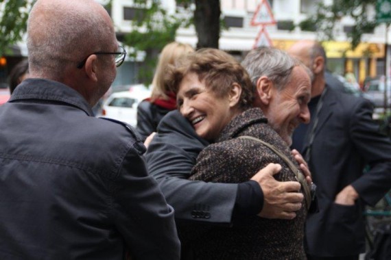 Prisrčno srečanje Vikija Grošlja z mamo Roka Petroviča in z režiserjem filma o roku Petroviču Božom Grljem