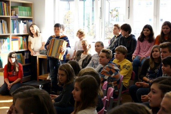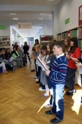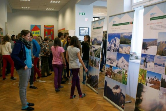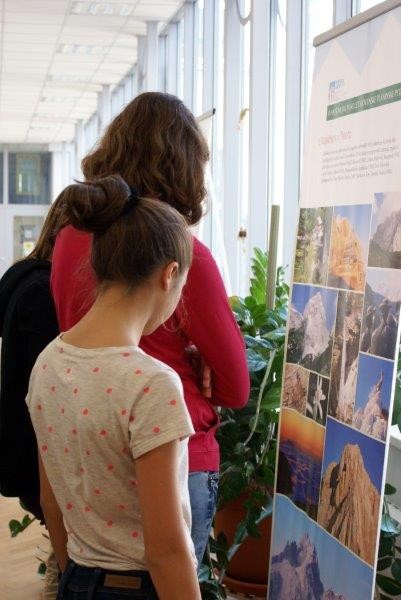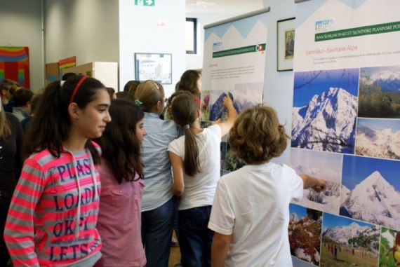 V knjižnico Osnovne šole Franceta Prešerna so sredi dopoldneva v sredo, 16. oktobra 2013, prihajali učenci višjih razredov. Vedoželjno so se ozirali po razstavljenih panojih, ki so prikazovali utrinke Slovenske planinske poti.