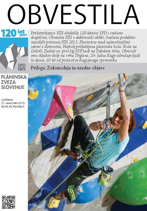 Predstavljamo: PZS obeležila 120-letnico SPD s svečano skupščino, Obvestila PZS v elektronski obliki, Svečana podelitev najvišjih priznanj PZS 2013, Planinstvo med najmočnejšimi vezmi z domovino, Najbolj priljubljena planinska koča: Koča na Dobrči, Zadnji oz. prvi žig SPP tudi na Debelem rtiču, Obnovili smo Aljažev stolp na vrhu Triglava, Dr. Julius Kugy združuje ljudi še danes, 60 let od postavitve Kugyjevega spomenika.