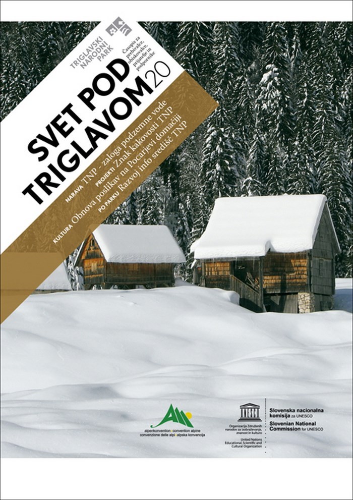 ponedeljek, 30. december 2013, ob 0. uri, ogledov: 5154 Nova številka časopisa Svet pod Triglavom Narava | | | Objavil(a): Zdenka Mihelič | | Izšla je 20. številka časopisa Triglavskega narodnega parka Svet pod Triglavom, ki je namenjena prebivalcem, obiskovalcem, ljubiteljem in podpornikom parka. | V njej so predstavljene aktualne vsebine s področij rednega dela in projektov Javnega zavoda Triglavski narodni park ter zanimivosti o naravi in kulturni dediščini. Med osrednjimi prispevki so naslednje vsebine: TNP - zaloga podzemne pitne vode, znak kakovosti TNP, obnova poslikav na Pocarjevi domačiji in razvoj informacijskih središč TNP. Izid časopisa sta finančno podprla Slovenska nacionalna komisija za UNESCO in Stalni sekretariat Alpske konvencije.