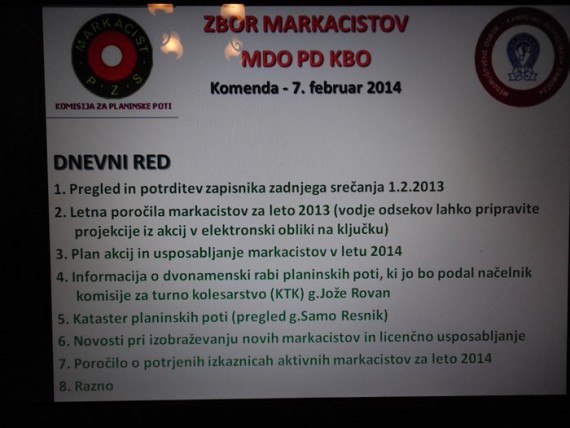 V petek, 7. 2.2014, so se v planinskem domu PD Komenda zbrali markacisti PZS MDO PD Kamniško-Bistriškega območja pod vodstvom načelnika markacistov OPP MDO PD KBO Alojza Pirnata.