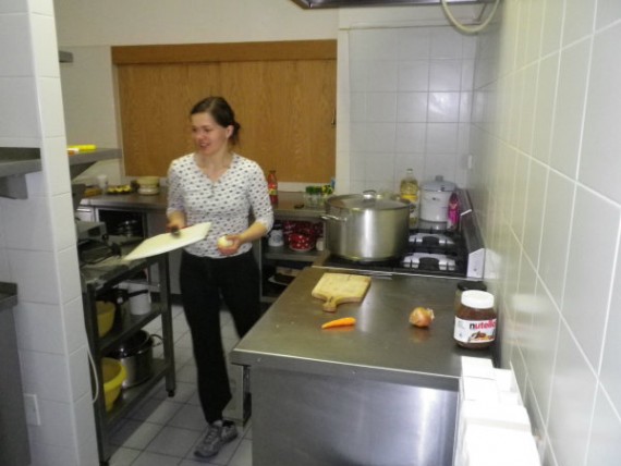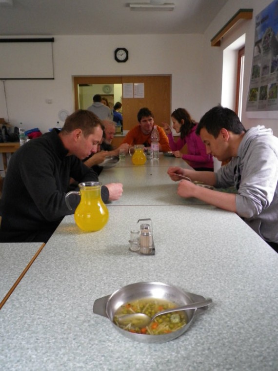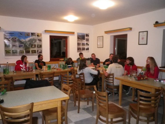 Kdor misli, da je zgornje poročilo preskopo, mu lahko postrežem še s par podrobnostmi. Kot rečeno, se je delovne akcije udeležilo 17 oseb. Pred odhodom v Bavšico smo sestavili seznam opravil ter nabavili barvo in orodje. Na seznamu je bilo poleg brušenja in barvanja oken ter polken še ureditev poti do poligona, ureditev cvetlične grede, barvanje določenih notranjih površin, inventura opreme ter generalno čiščenje in urejanje objekta in bližnje okolice. Med delovno akcijo smo v Bavšico dobili tudi razglednico planinskega prijatelja, na kateri je pisalo »Preveč dela škodi«. Navodilo smo do določene mere upoštevali, saj smo čas med večerjo in zajtrkom namesto delu namenili zabavi. Če pogledamo z druge strani, pa smo čas med zajtrkom in večerjo namenili delu. Za to pa smo potrebovali veliko energije, ki so nam jo preko okusne hrane zagotovile punce v kuhinji. Med njimi smo odkrili velik kuharski potencial.