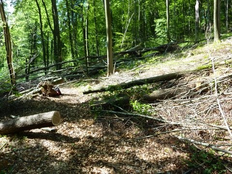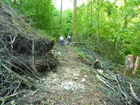 Člani PD smo februarja letos pričeli s čiščenjem posledic žleda, istočasno pa je stekla tudi akcija dogovarjanja s Kolesarskim društvom Grosuplje in načelnikom KTK PZS za odprtje dvonamenske poti.