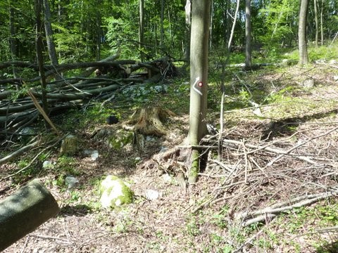 Na Grosupeljski planinski poti za dvonamensko rabo (oznaka na desni - Knafelčeva markacija z modro črto pod njo), foto arhiv PD Grosuplje