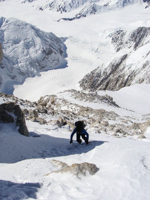 V torek 3. pričneva s aklimatizacijo. Prvotni plan, da prideva do 17.000 tabora nama prepreči močan veter na grebenu. Ker je za naslednji dan napovedano lepo vreme nato pa spet poslabšanje, se odločiva poizkusiti v smeri West Rib Cut-Off z vzponom na vrh Denalija. Naslednji dan se okoli 10. ure odpraviva proti vstopu v smer, pred nama je tudi ekipa AO Železničar. Na začetku plezava dobro in hitro, nekje na višini 5400 m pa začutim, da mi zmanjkuje moči, vedno bolj sem zadihan. Matej je imel manj težav, zato hodi spredaj. Nekako napnem moči, da izplezava - sam sestop po smeri bi bil težji. Ko izstopiva iz smeri, nekje na višini 6000 m, se odločim za takojšni povratek nazaj, medtem ko Matej sam odrine proti vrhu, ki ga čez uro tudi osvoji. Oba uspešno sestopiva.