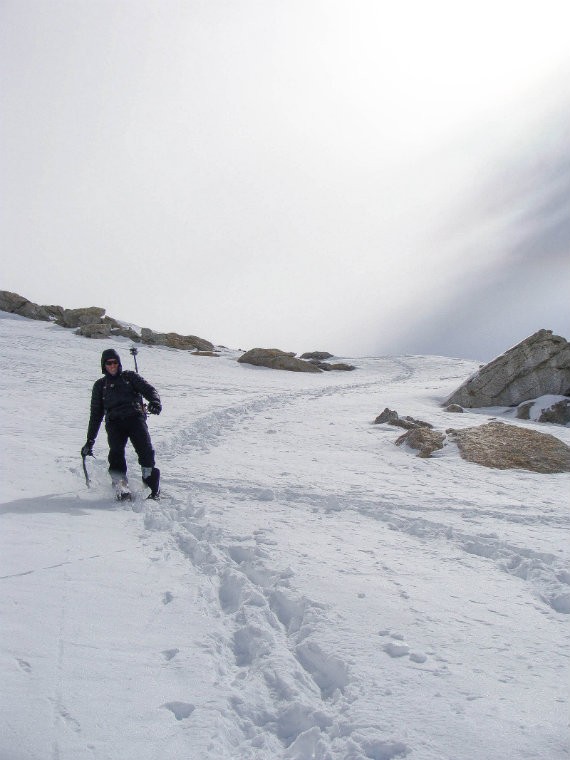 Vreme se za trenutek malo izboljša zato se odločiva, da se s tretjino opreme odpraviva do baznega tabora na višini 4350 m. |