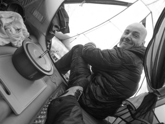 Dan izkoristiva za počitek, utrditev šotora ter izgradnjo zaščite proti vetru. |