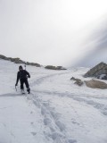 Podreva šotor ter se s celotno preostalo opremo odpraviva naprej - v še slabšem vremenu kot dan prej. |