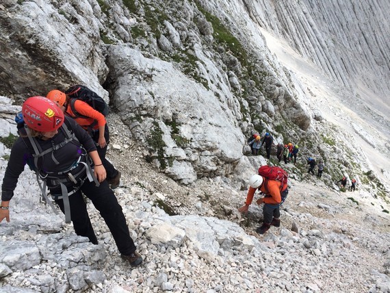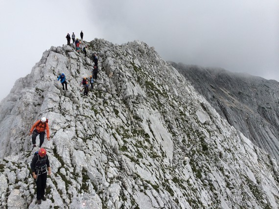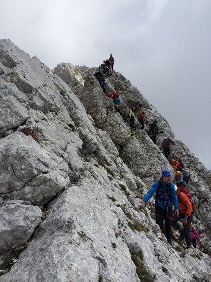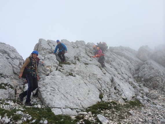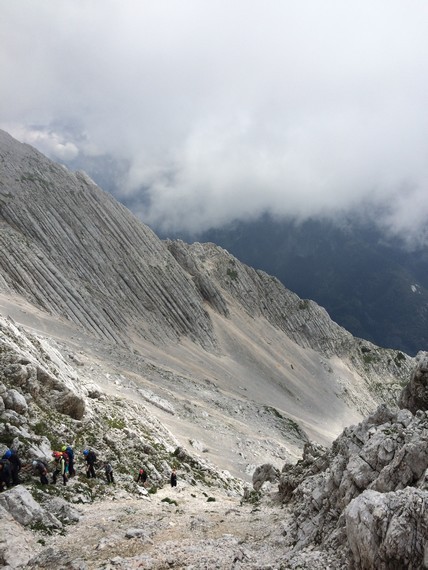 »Kljub temu da je letošnje poletje polno kislic-domislic, kar se tiče vremena, nismo ves čas sedeli v učilnici, saj smo uspešno smo izvedli dve turi, skoraj pa bi nam uspela še tretja,« vedro pove Špela, Aleks pa je o turah bolj gostobeseden. »Pohod na Stador (2025 m) je bila zelo lepa izkušnja - hoja po brezpotju in skalah, videli smo tudi sneg. Edino, kar me je rahlo motilo, so bile koprive, vendar smo preživeli tudi to.« O neuspeli turi pove: »Šli naj bi na Rombon, ampak smo prišli samo do izhodišča, saj je začelo deževati. Odločili smo se, da gremo na Svinjak, prišli smo do rovov iz 1. svetovne vojne na Čelu. Ko smo po ogledu rovov želeli nadaljevati pot, nam vreme ni dopustilo.« Zadnja, izpitna tura na Bavški Grintavec (2347 m) je bila nekoliko zahtevnejša: »Dobili smo nove izkušnje in ugotovili, da to [vodenje skupine, op. p.] ni tako lahko, kot izgleda. Vsem pa je bilo najboljše plezati po ferati, kjer smo sprožili malo preveč kamenja, a vodniki niso bili preveč jezni, kajti to se pač zgodi. Meni osebno ni bilo preveč všeč, ko smo hodili po grebenu, en napačen korak je tam lahko usoden. V dom smo vsi prišli srečno brez poškodb in prask.«