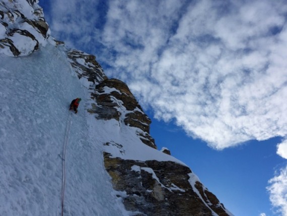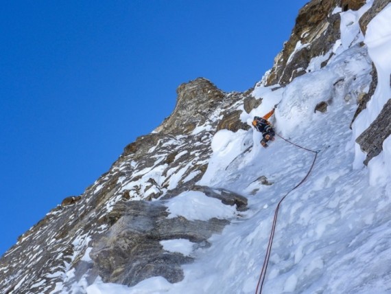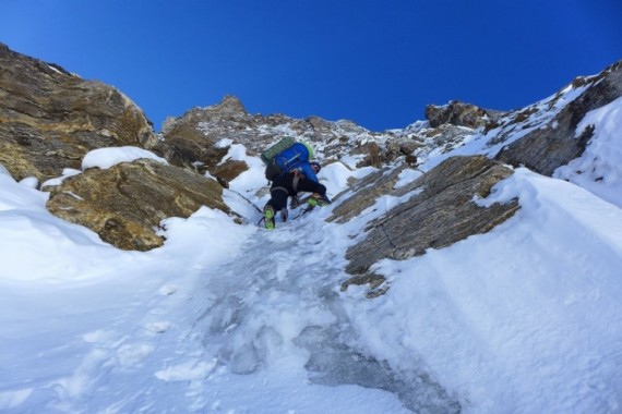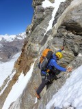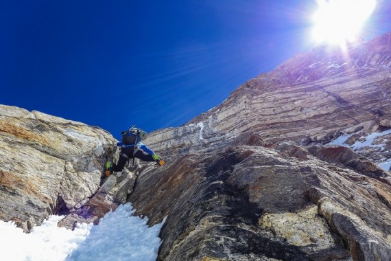 Aleš Česen v najzahtevnejšem delu severne stene Hagshuja, foto: Marko Prezelj