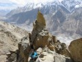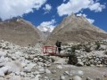 3.8. - Zjutraj odideva iz baze in po sedmih urah hoje najdeva prostor za šotor blizu ledenika. Prehoda do stebra nisva našla. Ponoči dežuje, občasno tudi sneži. Marko in Klemen dostopata pod Nameless Trango.