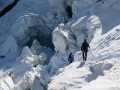 Kabina gondole se počasi dviga iz Saas Grunda proti Hohsaasu. Opazujem meglice in oblake, ki zakrivajo vrhove. Tako je bilo tudi lani, le da nismo vedeli, kaj nas čaka nad zgornjo postajo žičnice. Ko smo se s težkimi nahrbtniki na višini 3200 metrov izrinili iz kabine, smo bili kar malo zadihani in omotični. |