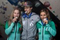 Vsi trije slovenski finalisti - Janja Garnbret, Mina Markovič in Domen Škofic - uvodne težavnostne preizkušnje svetovnega pokala športnih plezalcev v Švici na stopničkah. Iskrene čestitke! |