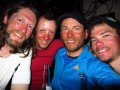 Brata Kurinčič (Nejc in Rok), Dean Strosar, Dejan Koren in Boštjan Mikuž so se pred kratkim vrnili z odprave v Kirgizistanu. Med osemnajstdnevnim odkrivanjem sten narodnega parka Ala Acha so preplezali kar štiri prvenstvene smeri, od katerih je ena posvečena pogrešanemu alpinistu Petru Mežnarju, druga pa že pred leti v steni Eigerja ponesrečenemu Jožetu Vidmarju. K domačim ognjiščem so se vrnili živi, celi in zdravi, tako da lahko odpravo ocenimo kot zelo uspešno. |