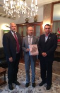 Ljubljana, 29. julij 2014 - Predstavnika Ministrstva za zunanje zadeve RS, Andrej Šter in Nataša Bergelj ter predsednik Planinske zveze Slovenije Bojan Rotovnik in koordinator iskalno-reševalne akcije Matjaž Šerkezi so v torek, 29. 7. 2014, obiskali Veleposlaništvo Ljudske republike Kitajske v Ljubljani. Veleposlaniku Nj. eksc. g. Zhang Xianyi-u so se zahvalili za vso pomoč in podporo, ki so jo veleposlaništvo, kitajski državni organi in kitajska vojska nudili ob izvedbi iskalno-reševalne akcije pogrešanih slovenskih alpinistov Aleša Holca in Petra Mežnarja v pogorju Shaksgam. |