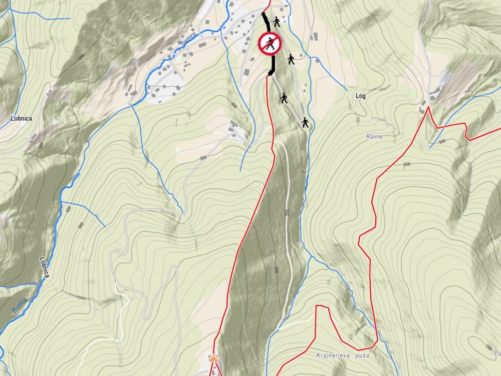 OBVESTILO UPORABNIKOM PLANINSKIH POTI: Uporabnikom planinskih poti priporočamo, da se na spletni strani stanje-poti.pzs.si, v bližnji planinski koči ali pri lokalnem planinskem društvu predhodno informirajo o dejanskem stanju planinskih poti. Če opazite poškodbe planinskih poti ali njihovo neustrezno urejenost (obledele markacije, zaraščenost ipd.), prosimo, da na naslov poskodbe.poti@pzs.si pošljete sporočilo, v katerem navedite, na kateri planinski poti ste opazili pomanjkljivost in pomanjkljivost opišite ter če je možno, dodajte tudi fotografijo.