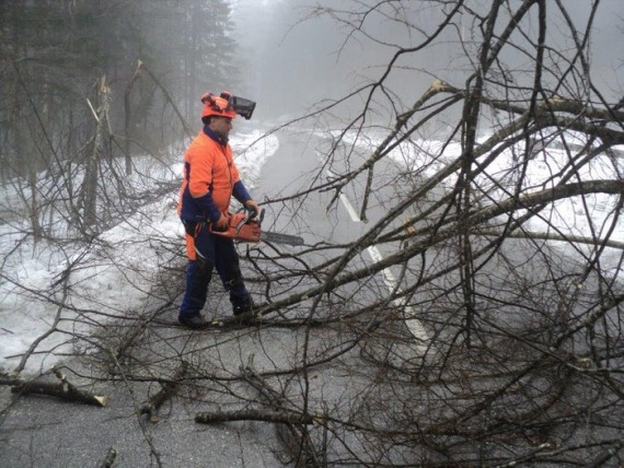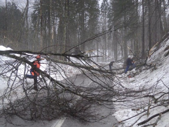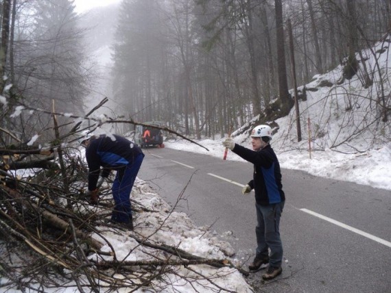 Interventna skupina markacistov je z opremo tehnične skupine Komisije za planinske poti PZS in z znanjem na strmih zasneženih pobočjih ter v slabem vremenu podrla viseča drevesa, odstranila veje in tako sprostila cesto ter vzpostavila varnejše razmere za javni promet.