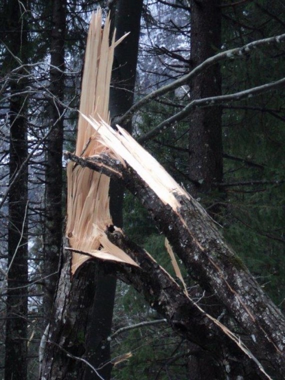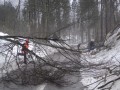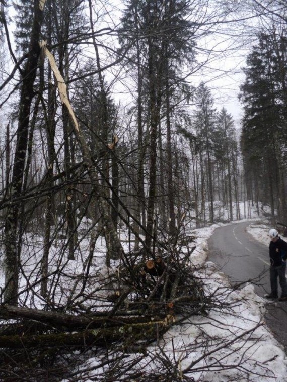 Poleg podrtih dreves, ki so delno zapirala cesto v dolini Kamniške Bistrice, so veliko nevarnost predstavljala viseča, delno tudi polomljena drevesa in veje, ki so se nagibala nad cesto.