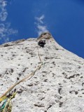 27. 8. 2013, Nastja Davidova z izpolnjeno željo na Frenejskih stebrih - Boningtonova smer