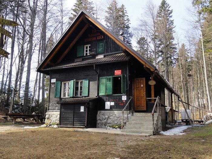 Koča stoji sredi gozda malo nad gozdno cesto čez preval Strgarija na jugozahodni strani Malega Golaka, najvišjega vrha Trnovskega gozda. Zgradilo jo je PD Ajdovščina; odprlo jo je 10. septembra 1950. Poimenovali so jo po Ivanu Turšiču - Iztoku (1922-1944), komandantu 30. divizije NOV Slovenije, ki je padel med nemško ofenzivo v bližini Lokev. V letu 2017 so kočo drugič povečali in sicer so dogradili sanitarno enoto s tušem.