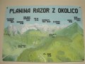 Od koče in s planine Razor je zelo lep razgled. Na vzhodu se dvigajo pobočja Žabiškega Kuka. Prostran razgled je proti jugu na Tolminsko kotlino, Banjško planoto in Tržaški zaliv. Na zahodu seže pogled do Matajurja in Krnskega pogorja, v bližini pa vidimo Tolminski Migovec. Na severu se dviga nad planino Razor venec Tolminsko-Bohinjskih gora z vrhovi Vrh nad Škrbino, Meja, Rušnati vrh, Vrh Planje, Vrh Krnic in Vogel. Če se povzpnemo na preval Globoko pod Vrhom Planja, pa se odpre obširen razgled na Bohinjsko stran, Julijce s Triglavom in Karavanke.