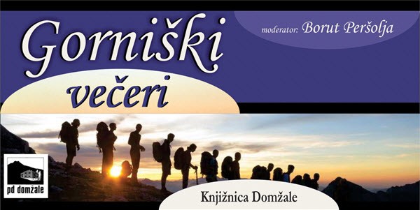 Gorniški večer z Anžetom Čoklom: Bohinjski prvopristopniki | Vrsta dogodka | Srečanje | Kdaj | 7. 10. 2014 ob 19. uri | Kje | v Knjižnici Domžale, Cesta talcev 4 v Domžalah | Društvo | Planinsko društvo Domžale | Organizator | PD Domžale in Knjižnica Domžale | Cena | Vstopnine ni. | ***