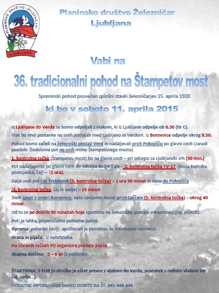 11. 4. 2015 / Pohod, ogledov: 285436. tradicionalni pohod na Štampetov most Komentarji