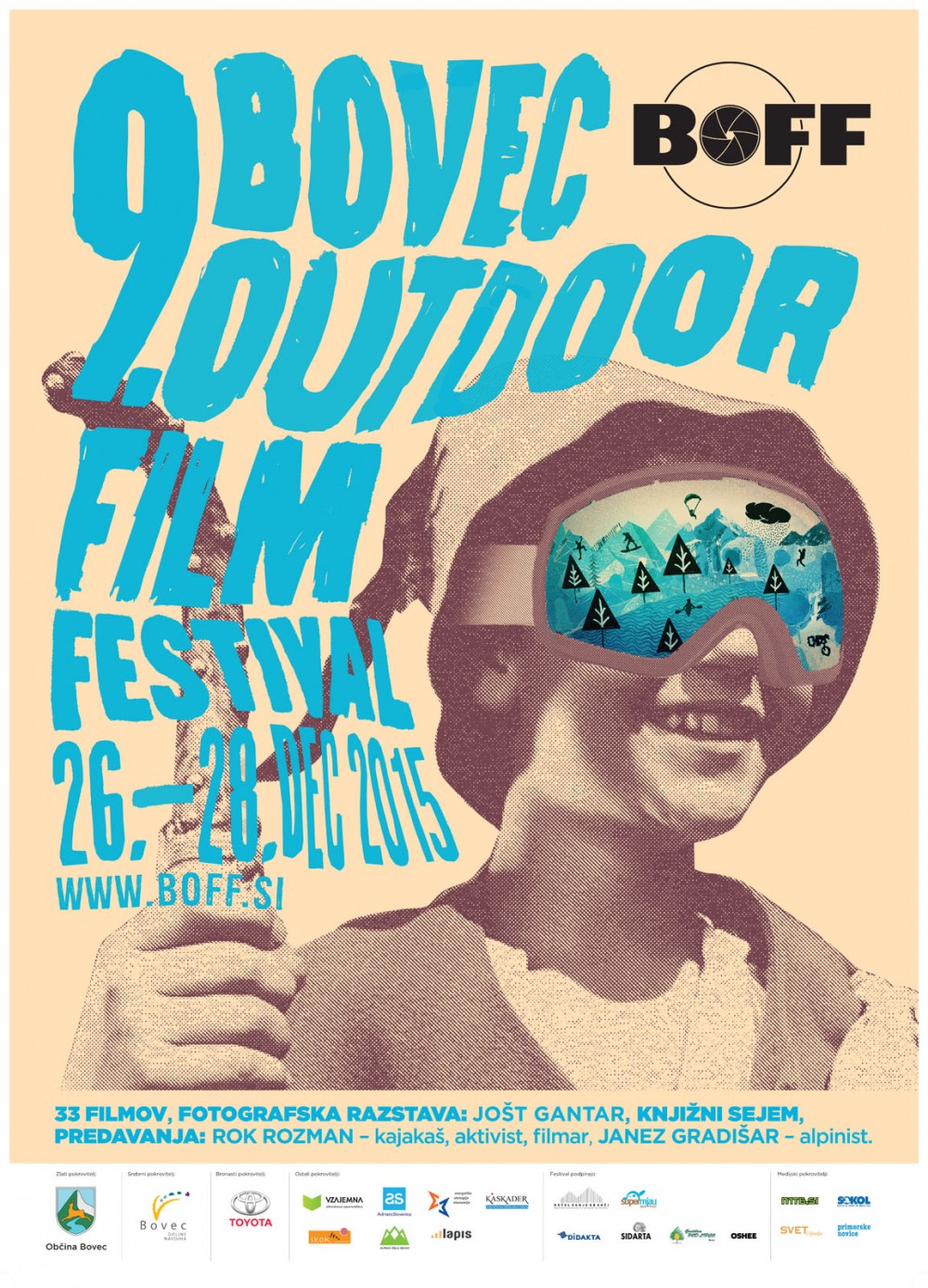9. Bovec Outdoor Film Festival | Vrsta dogodka | Kulturna prireditev | Kdaj | 26. 12. 2015 | Traja do | 28. 12. 2015 (3 dni) | Kje | Bovec, Stergulčeva hiša | Povezava | http://www.boff.si/ | Na platnu bodo prikazali 33