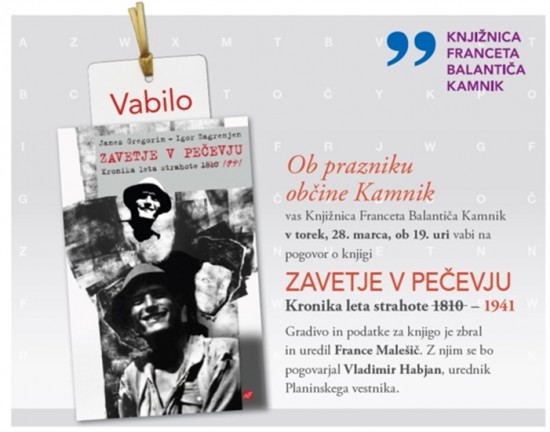 torek, 28. marca, ob 19. uri na pogovor o knjigi Zavetje v pečevju: