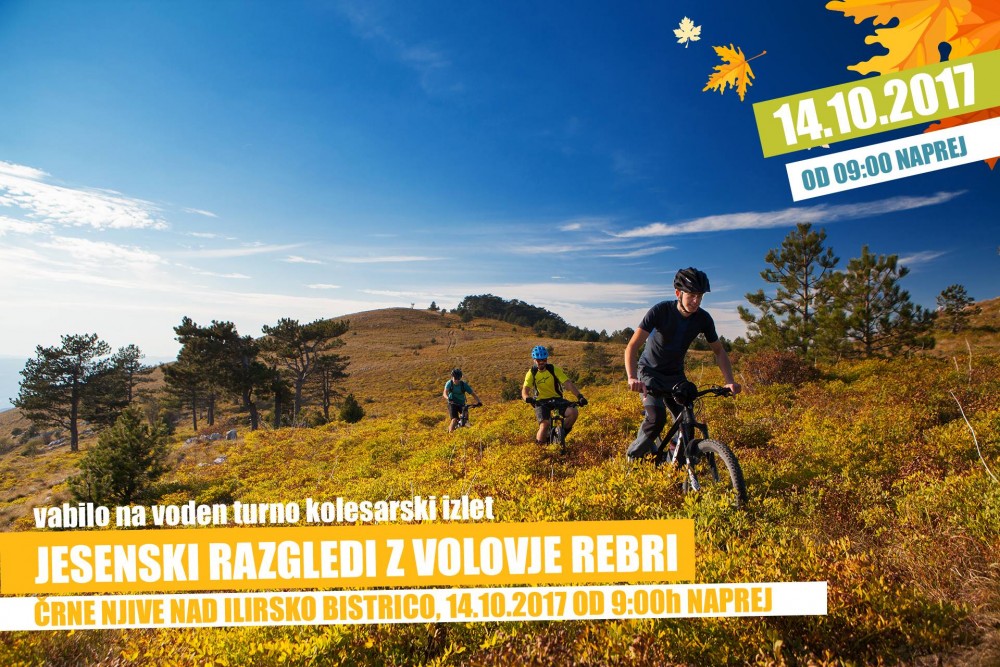 Turnokolesarski izlet Jesenski razgledi z Volovje rebri | Vrsta dogodka | Slovenija planinari | Kdaj | 14. 10. 2017 | Kje | Ilirska Bistrica | Društvo | Planinsko društvo Snežnik Ilirska Bistrica | Komisija | Komisija za turno kolesarstvo | Povezava | http://pdsneznik.si/2017/vabilo-na-turno-kolesarki-izlet-jesenski-razgledi-z-volovje-rebri/ | Turnokolesarska