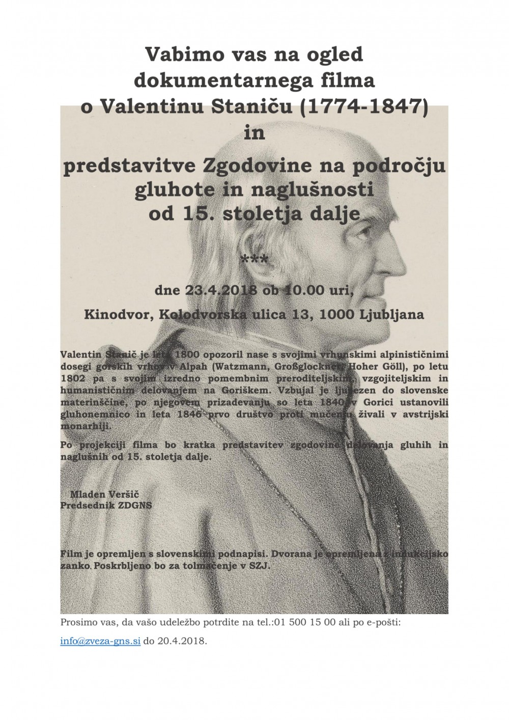 23. 4. 2018, ogledov: 1240Projekcija dokumentarnega filma o Valentinu Staniču | Kdaj | 23. 4. 2018 10:00, Kinodvor Ljubljana | Kje | Ljubljana |