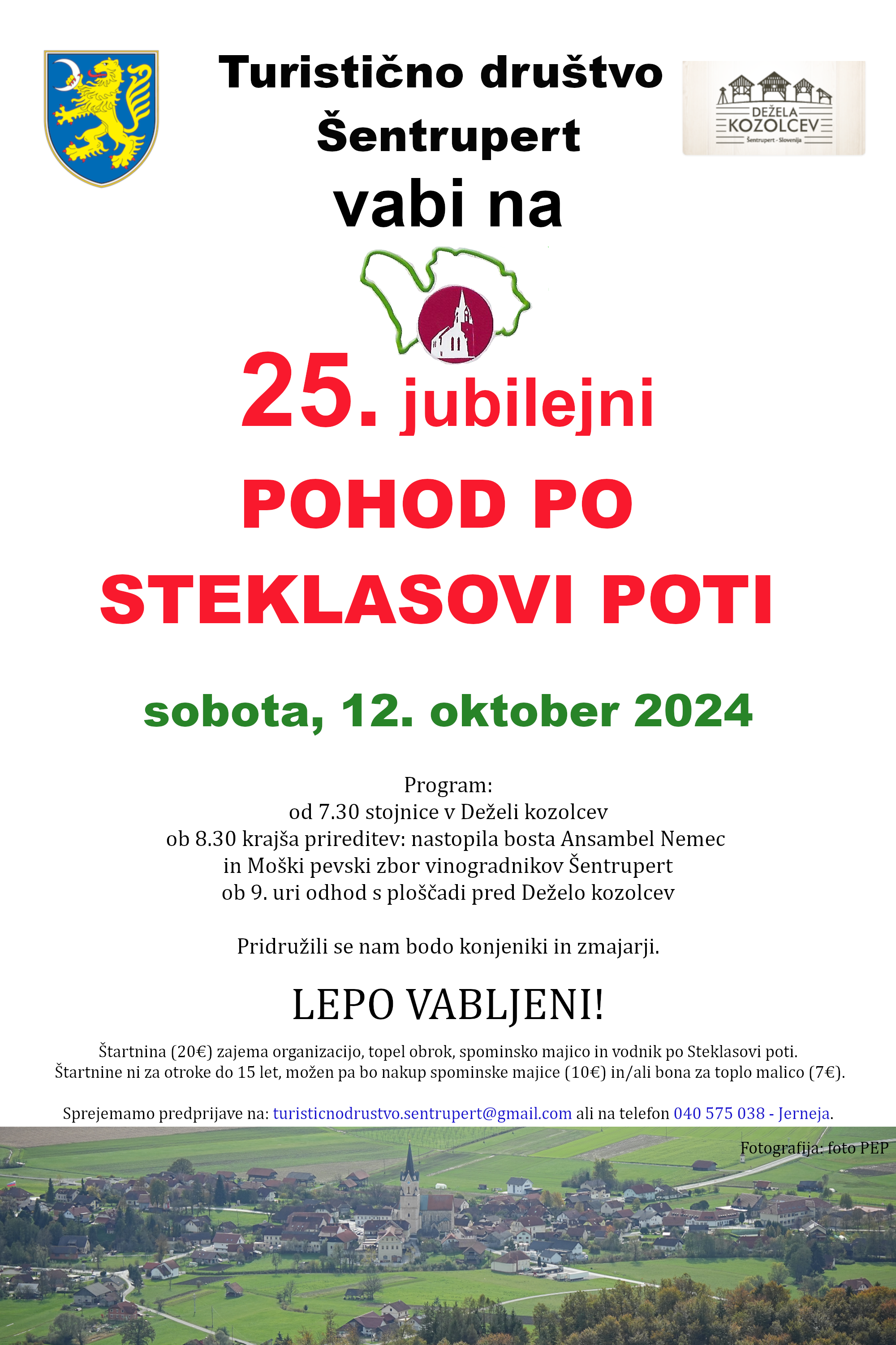 Prijave se zbirajo na e-naslovu turisticnodrustvo.sentrupert@gmail.com ali na telefonski številki 040 575 038 (Jerneja). |