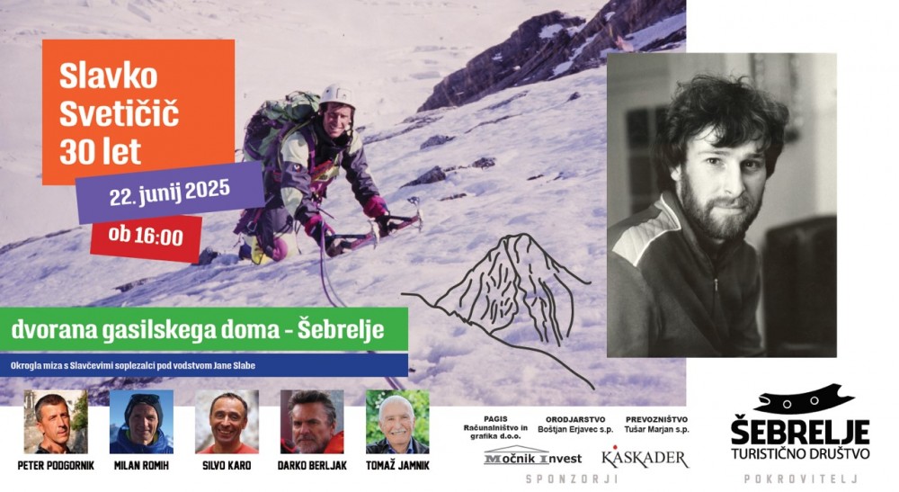 Slavko Svetičič | okrogla miza | Vrsta dogodka | Kulturna prireditev | Kdaj | 22. 6. 2025 | Kje | Šebrelje pri Cerknem | Komisija | Komisija za alpinizem | Organizator | TD Šebrelje | Vabljeni v nedeljo, 22. junija 2025, ob 16.00 uri, na okroglo mizo s Slavčevimi soplezalci ob 30. obletnici. Dogodek bo potekal v dvorani gasilskega doma v Šebreljah pri Cerknem. |