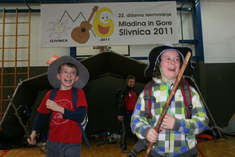 A mladi, polni znanja in željni izzivov, so že komaj čakali, da začnejo pisati težko pričakovane teste, na katere se niso pripravljali le zadnje tedne, temveč so svoje znanje pridobivali na planinskih pohodih in skozi celoletno delo v planinskih krožkih. Državno tekmovanje Mladina in gore je bilo tokrat v znamenju glasbe, saj so morali mladi planinci poleg znanja iz Planinske šole pokazati svojo domiselnost in znanje tudi o glasbi v gorah in o besedilih pesmi z zgoščenke Mladinske komisije PZS »Greva pod objem gora«. Ko so sodniki ocenjevali njihove odgovore, je organizator poskrbel za družabnost z igrami, bansi in predavanjem o trekingu v Nepalu. Koliko smeha in razigranih otrok, samo veselje! Največ smeha pa je požela zanimiva igrica gostiteljev o dogajanju in vzdušju v planinskem taboru, ki je prijetno povezovala celotno tekmovanje.