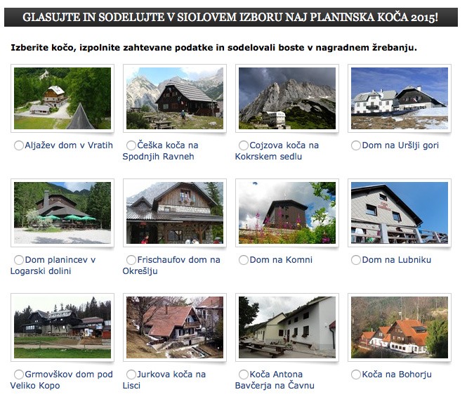 krog glasovanja za najboljšo planinsko kočo leta 2015 poteka le še do