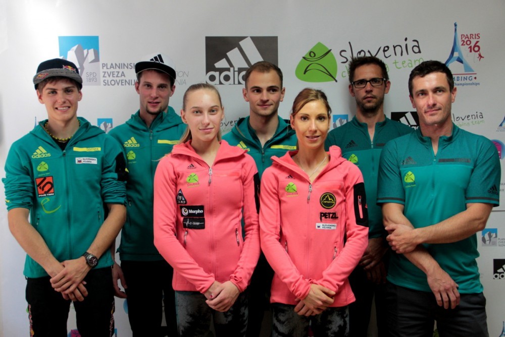 Enajstčlansko slovensko posadko za svetovno prvenstvo Pariz 2016 sestavljajo športne plezalke Mina Markovič, Janja Garnbret, Tjaša Kalan in Rebeka Kamin, ki bodo nastopile v težavnosti, ter Julija Kruder in Tjaša Slemenšek, tekmovalki v balvanskem plezanju, v moški konkurenci pa bodo v težavnosti tekmovali Domen Škofic, Urban Primožič in Martin Bergant ter v balvanih Jernej Kruder in Gregor Vezonik.