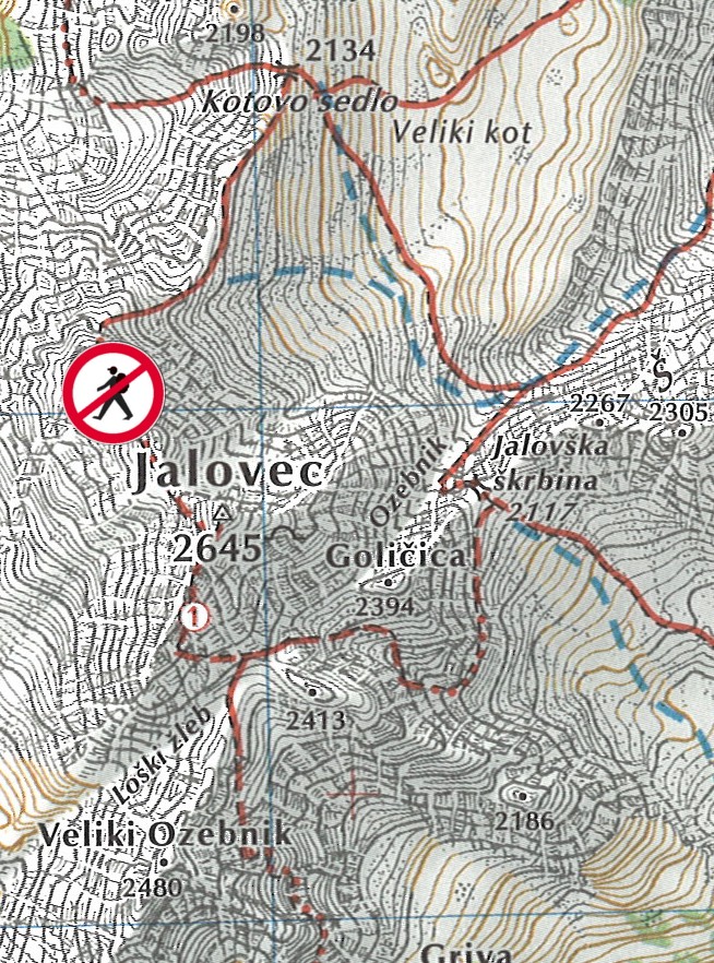 četrtek, 22. september 2016, ob 10.50 uri, ogledov: 6947 Pot med Kotovim sedlom in Jalovcem 23. in 24. septembra zaprtaPoti | | Komisija za planinske poti | | | Objavil(a): Matej Ogorevc | | Zaradi vzdrževalnih del na zelo zahtevni planinski poti med Kotovim sedlom in Jalovcem, bo pot zaprta v petek 23. in v soboto, 24. septembra 2016. | V skladu s 16. členom Zakona o planinskih poteh (Uradni list RS, št. 61/2007) Planinska zveza Slovenije obvešča, da bo 23. in 24. septembra 2016 ZAPRT zelo zahtevni odsek planinske poti med Kotovim sedlom (2134 m) in Jalovcem (2645 m).