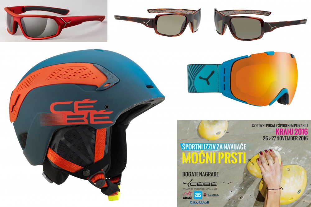 Očala Sportactive serije so, kot namiguje ime, namenjena aktivnemu športniku ali športnici, ki potrebuje modna očala, ki se bodo izkazala v aktivnem okolju. Prejeli jih bodo trije najboljši v ženski in moški kategoriji "MOČNIH PRSTOV". Najboljša (m/ž) bosta prejela tudi čelado Cebe Trilogy. Ta združuje tri čelade v eni. Z manjšimi modifikacijami se lahko uporablja za smučanje, gorsko kolesarjenje in plezanje, zato je idealen pripomoček za športne navdušence. Cébé Trilogy je edina, čelada narejena za smučanje, gorsko kolesarjenje in plezanje, opremljena z RECCO iskalnim sistemom.