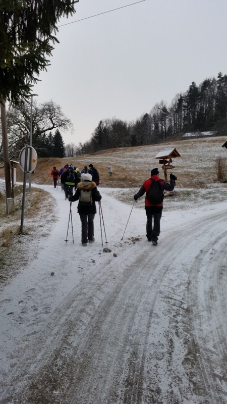 Tradicionalno postaja tudi vreme, saj so nas , za nedeljo, zgodnje jutranje ure, pričakale z rahlim sneženjem , ki pa se je potem okrepilo in snežna kulisa je šele naredila pohod pravi zimski pohod, kakršen naj bi bil ob začetku leta.