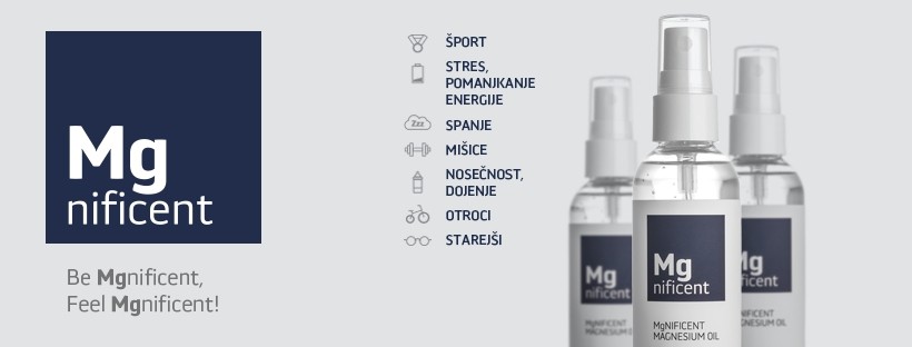 četrtek, 20. april 2017, ob 16.15 uri, ogledov: 3613 Magnezijevo olje Mgnificent - rešitev za utrujene mišiceReklamno sporočilo | | | REKLAMNO SPOROČILO | Objavil(a): Matej Ogorevc | | Po intenzivni fizični aktivnosti preprosto popršite in vtrite v kožo na predelih, kjer čutite bolečine, mišične krče, otrdelost ali mravljinčenje in si zagotovite manj bolečin v mišicah in sklepih ter hitrejšo regeneracijo. | Magnezijevo olje Mgnificent je popolnoma naravna, visoko koncentrirana mineralna raztopina izjemno čistega magnezijevega klorida brez dodanih konzervansov.